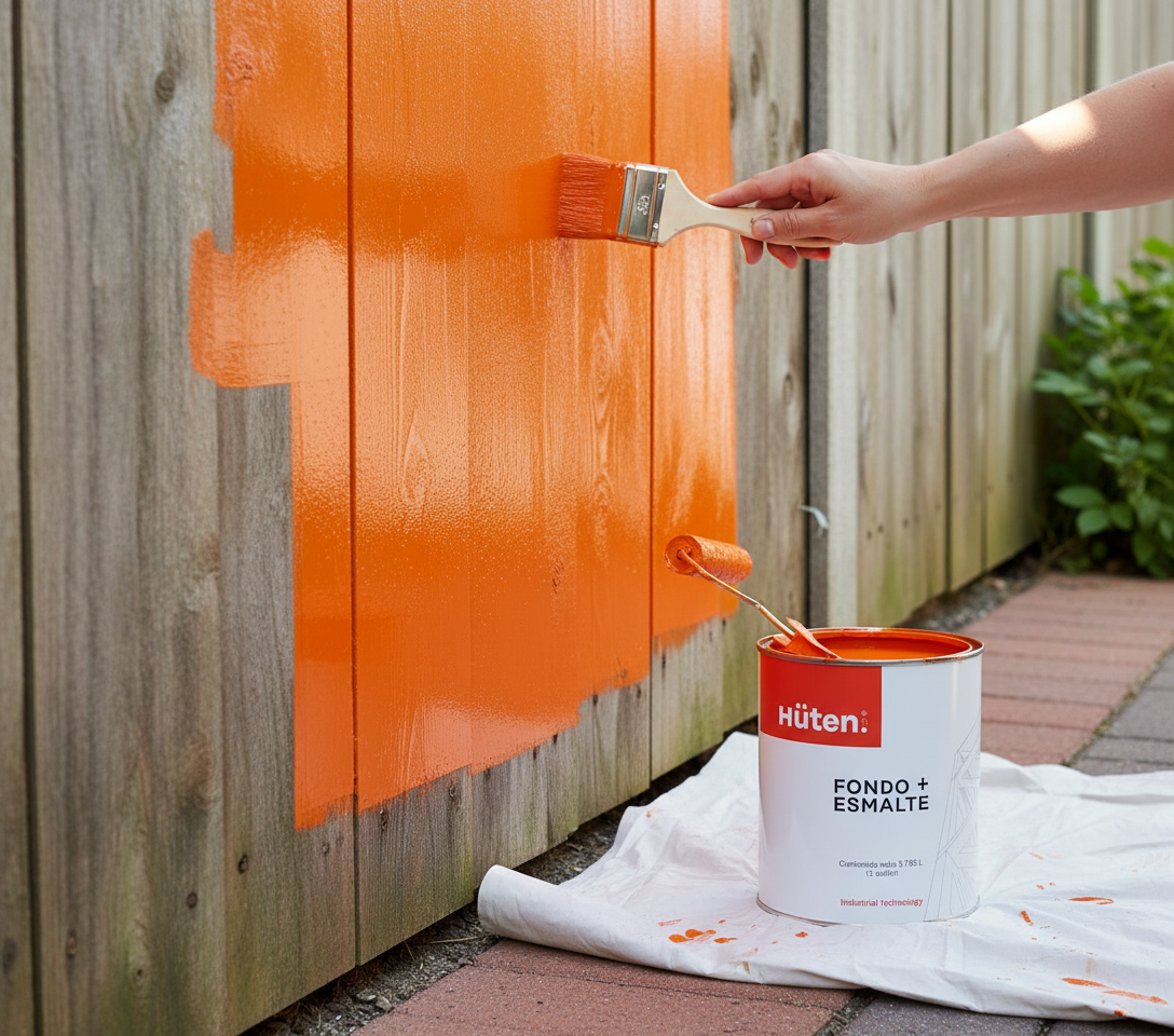 Mientras otras pinturas para cercas de jardin requieren retoques frecuentes, Huten integra fondo y esmalte en una sola aplicacion para mayor duracion.