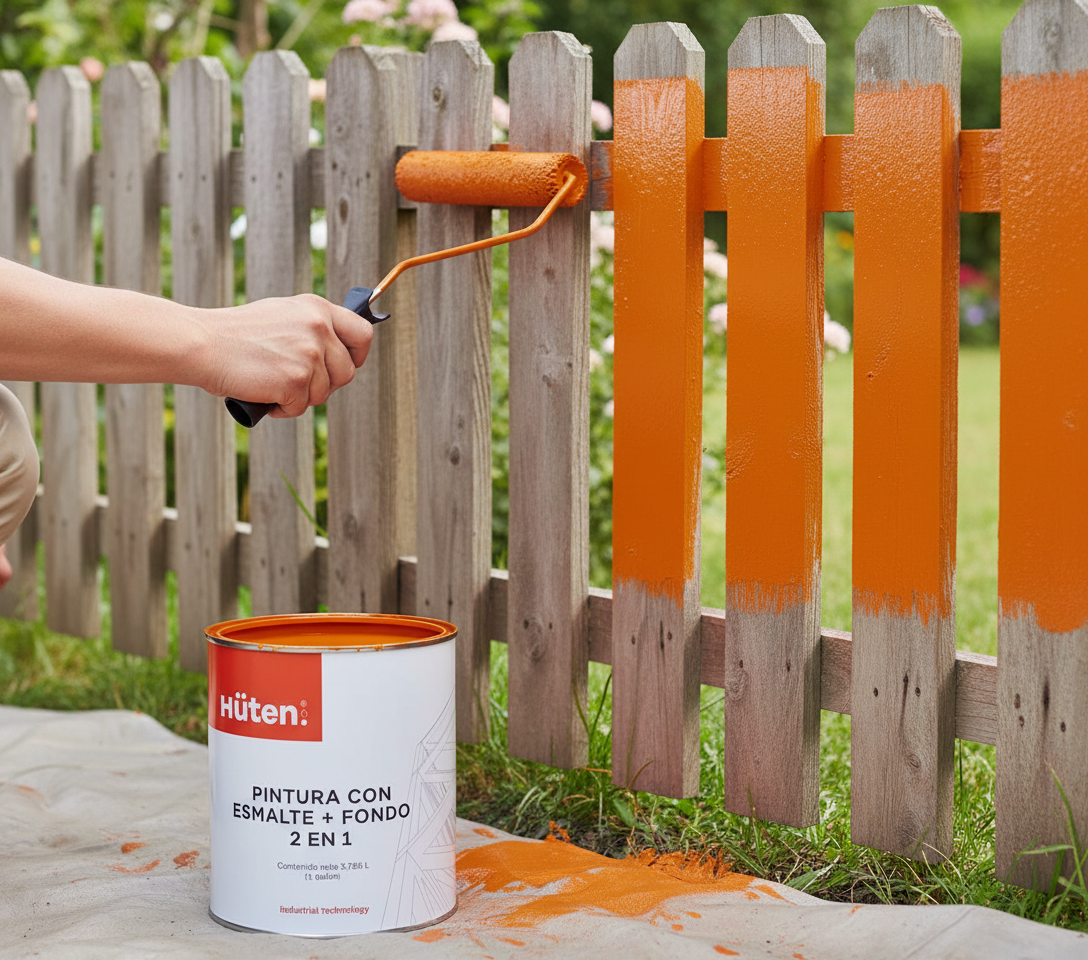 Mientras otras pinturas para cercas exigen varias manos y repintados frecuentes, Huten combina fondo y esmalte para mayor duracion.