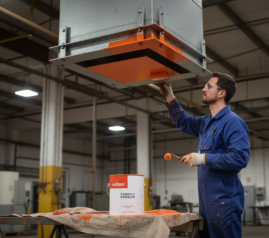 La Pintura anticorrosiva para ductos metalicos expuestos Huten es un recubrimiento 2 en 1 que actua como fondo y esmalte en una sola mano para proteger ductos, cañerias y conducciones metalicas expuestas a la intemperie o ambientes corrosivos, con secado rapido y excelente adherencia.