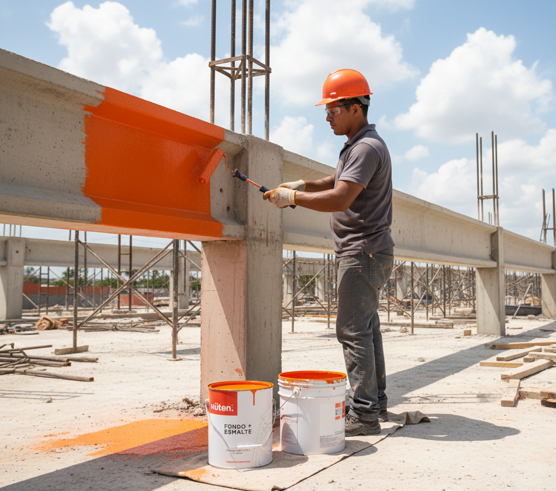 La Pintura anticorrosiva para estructuras de concreto de Huten es una solucion 2 en 1, formulada como fondo y esmalte en una sola mano para proteger estructuras de concreto contra la corrosion, con secado rapido y rendimiento industrial; disponible en la gama de pinturas Huten en Venezuela junto a esmaltes e impermeabilizantes.