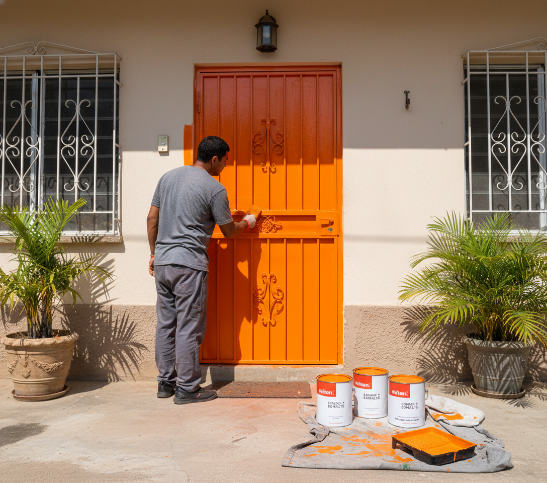 La Pintura anticorrosiva para puertas de acero Huten es una formulacion 2 en 1 que actua como fondo y esmalte en una sola mano para proteger puertas, portones y accesos en acero contra la corrosion, con secado rapido y acabado uniforme.