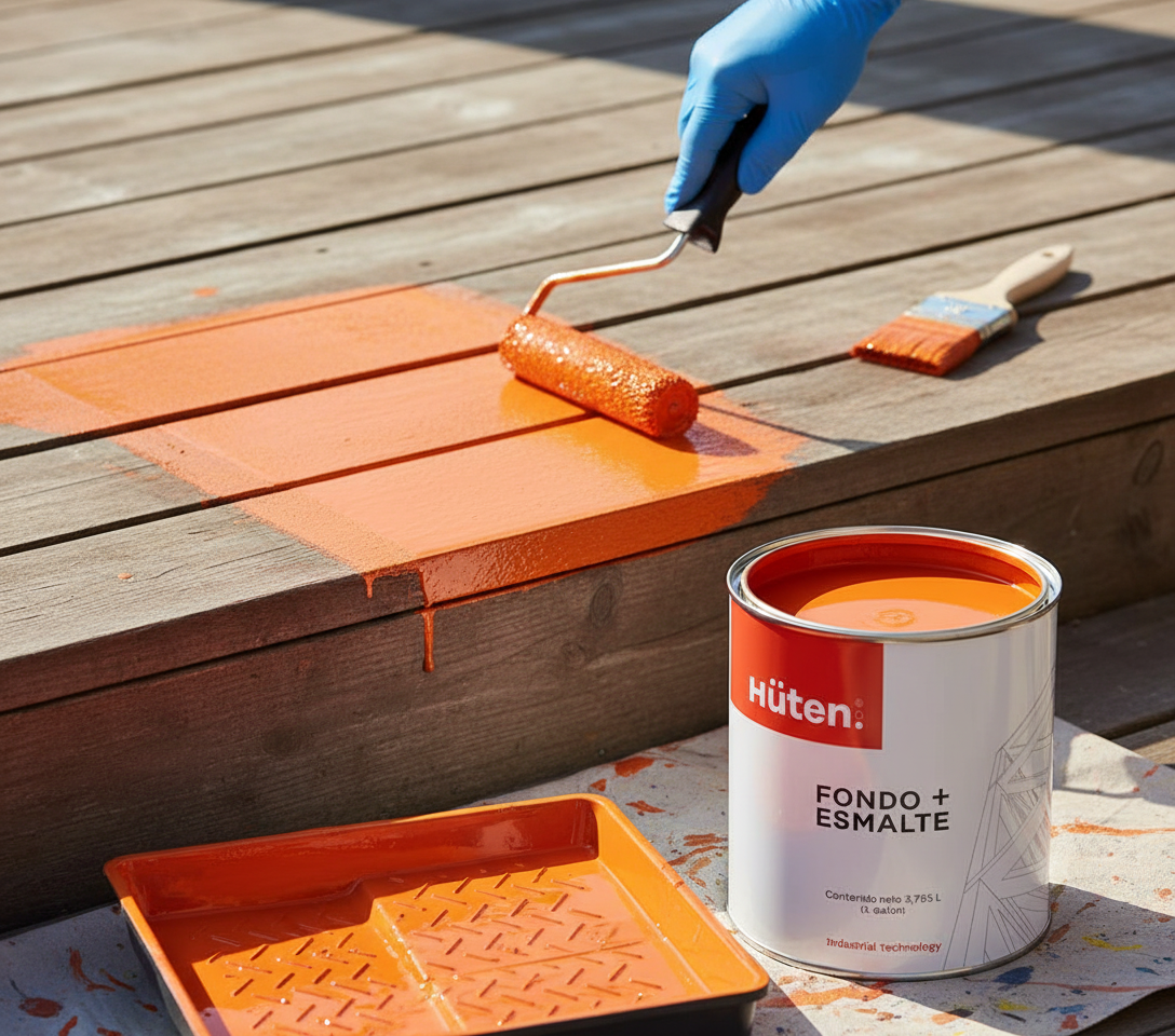 Mientras otras pinturas necesitan varias manos y lijados, Huten combina fondo y esmalte para un proceso mas rapido y efectivo.