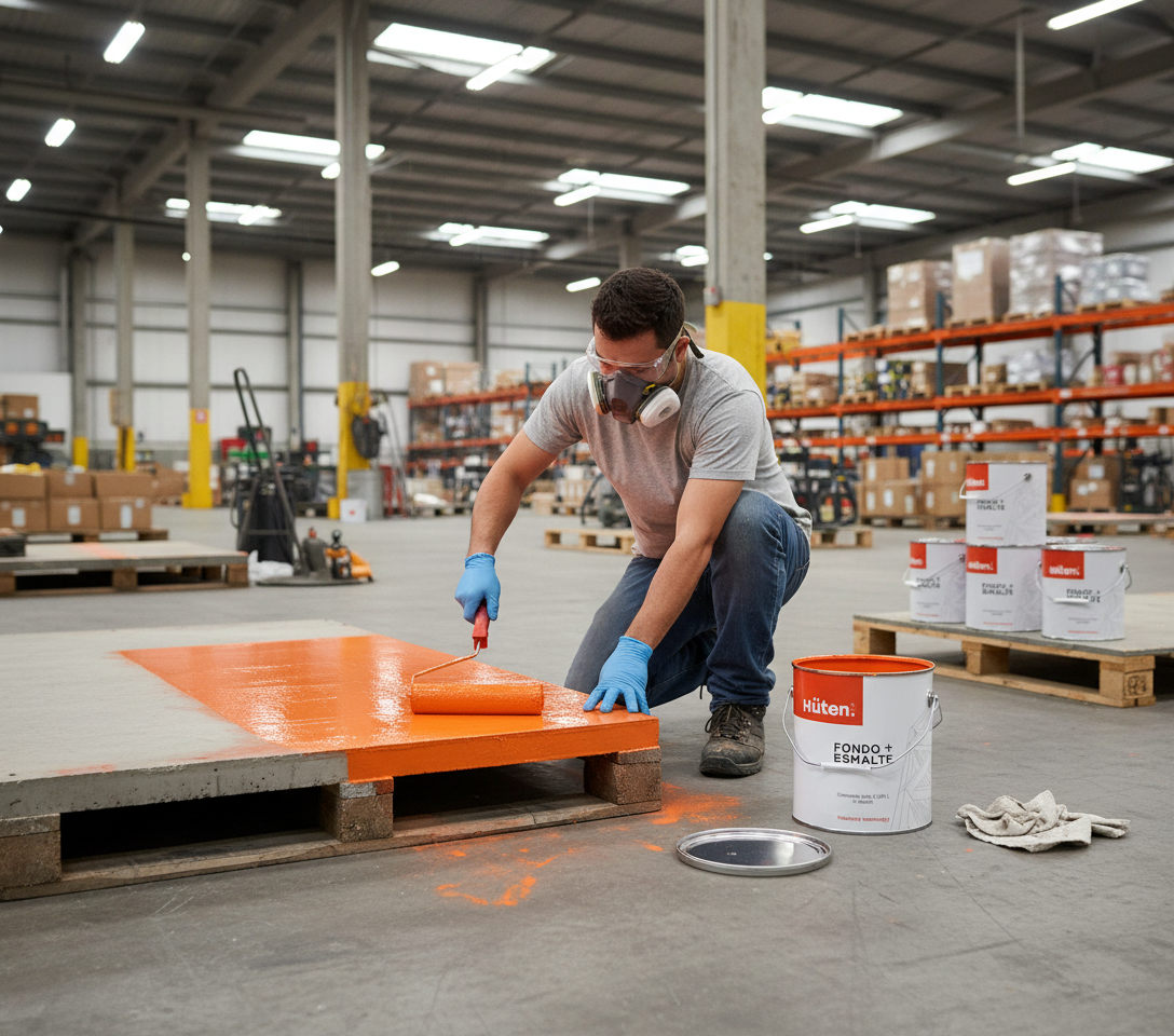 La Pintura anticorrosiva para tarimas de concreto de Huten es una solucion 2 en 1, formulada como fondo y esmalte en una sola mano para proteger tarimas y bases de apoyo contra la humedad y el desgaste, con secado rapido y adherencia superior; disponible en la gama de pinturas Huten en Venezuela junto a esmaltes e impermeabilizantes.