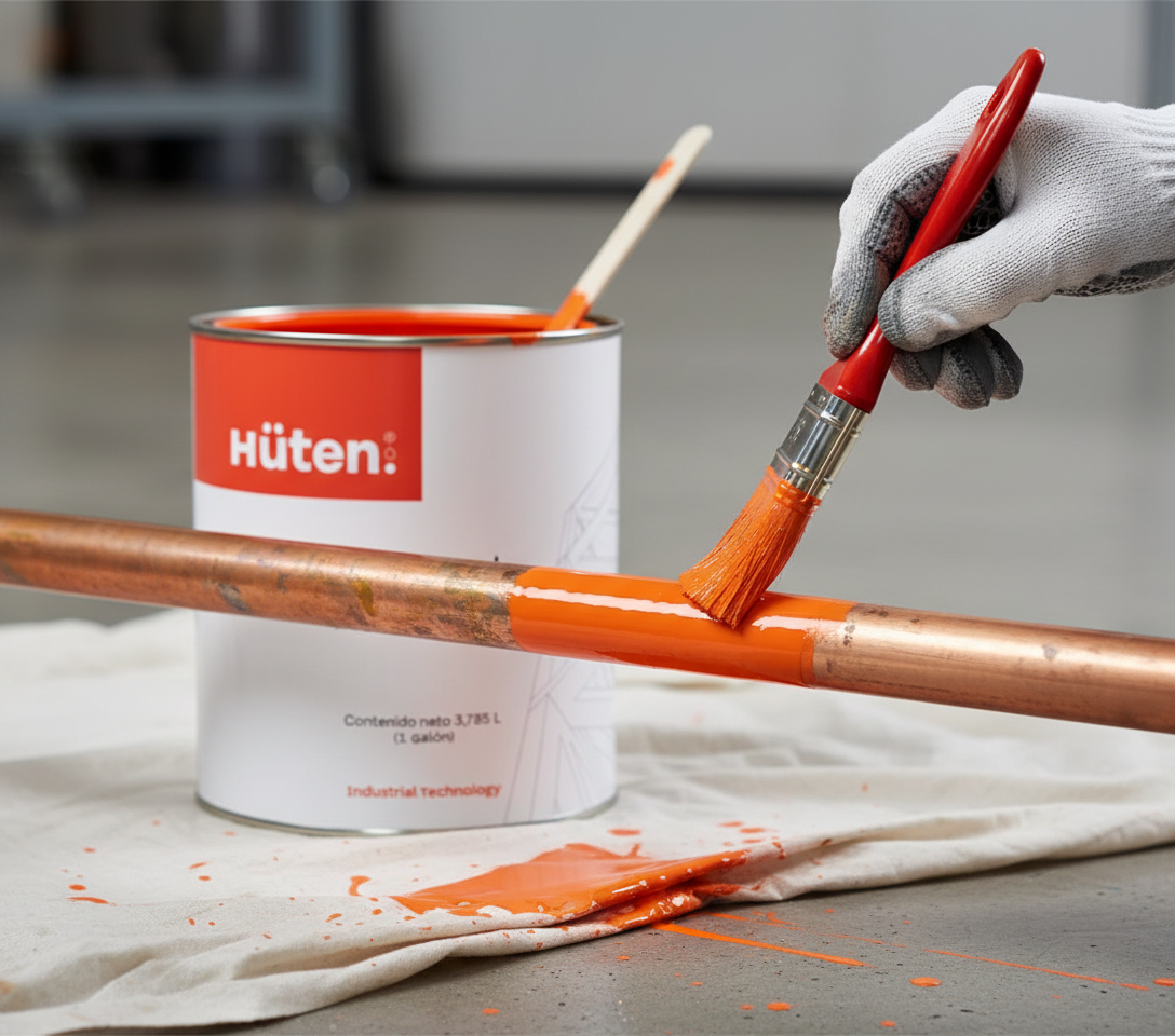 La Pintura para superficies de cobre de Huten es un sistema anticorrosivo y esmalte listo para aplicar que protege tuberias y componentes de cobre contra oxidacion y meteorizacion, manteniendo estetica y funciones; incluida en la gama de pinturas Huten junto a esmaltes e impermeabilizantes.